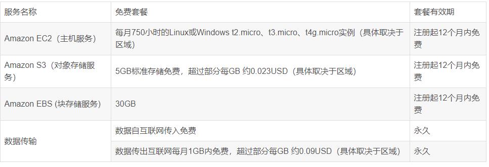 由于亞馬遜云科技服務(wù)種類(lèi)較多,且計(jì)費(fèi)詳細(xì),很多用戶有些看不懂,所以對(duì)使用亞馬遜云望而卻步。其實(shí)亞馬遜云科技很多服務(wù)都有免費(fèi)套餐,以讓用戶體驗(yàn),這些服務(wù)的免費(fèi)套餐,搭建一個(gè)私人網(wǎng)盤(pán)綽綽有余。由于亞馬遜云海外區(qū)僅需個(gè)人信用卡就可以注冊(cè),所以我們以海外區(qū)為例。我們可以從以下鏈接亞馬遜AWS海外區(qū)域賬戶免費(fèi)套餐_免費(fèi)云服務(wù)-AWS云服務(wù) 看到亞馬遜云哪些服務(wù)具備免費(fèi)套餐: